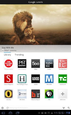 El agregador de noticias de Google permite navegar entre una selección de temas candentes, contenidos seleccionados por algunos reconocidos expertos como es el caso de Guy Kawasaki o Robert Scoble. Forbes, The Guardian, TechCrunch o PBS son algunos de los medios que ya han creado ediciones adaptadas para este programa. El catálogo inicial cuenta con más de 400 ediciones.